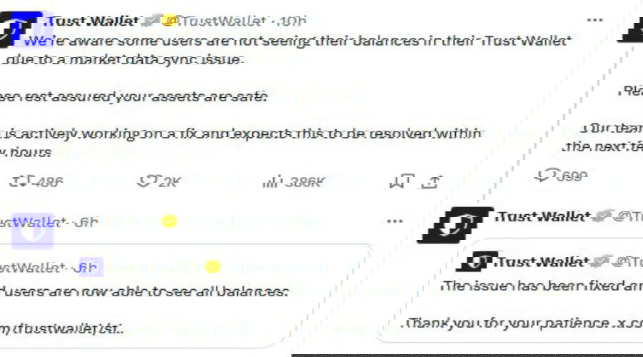 تیم تراست ولت در بیانیه رسمی جدید خود اعلام کرده که این مشکل اکنون برطرف شده و کاربران میتوانند تمام موجودیها را مشاهده کنند.