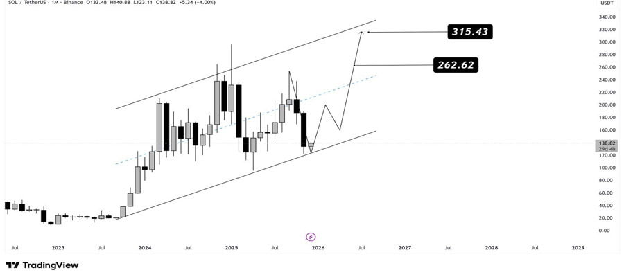 سولانا (SOL) این روزها در نزدیکی یکی از مهمترین حمایتهای ماهانه خود در حوالی ۱۳۲ دلار معامله میشود؛ سطحی که با کف کانال صعودی بلندمدت مطابقت دارد و پیش از این چندین بار نقطه شروع روندهای پرقدرت بوده است.