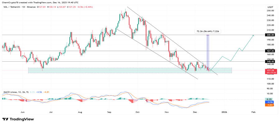 مقاومتهای کلیدی در ۱۴۵ و ۱۶۷ دلار قرار دارند و شکست این سطوح میتواند مسیر رشد تا ۲۰۰ دلار را هموار کند، یعنی حدود ۵۶ درصد افزایش از قیمت فعلی.