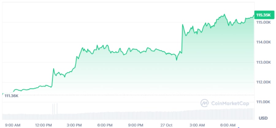 در ۲۴ ساعت گذشته و همزمان با بهبود امیدها نسبت به مذاکرات تجاری بین آمریکا و چین، بیتکوین توانست سطح ۱۱۵ هزار دلار را پس بگیرد. این ارز دیجیتال در این مدت ۳.۵ درصد رشد کرده و از ۱۱۱،۳۶۰ دلار به ۱۱۵،۳۵۰ دلار رسیده است. به این ترتیب، بیتکوین اکنون تقریباً ۸.۵ درصد پایینتر از رکورد تاریخی ۱۲۶،۲۰۰ دلاری خود در ۶ اکتبر قرار دارد.مذاکرات اخیر میان مقامات آمریکا و چین در مالزی، به یک چارچوب توافق مقدماتی منجر شده که هر دو طرف آن را گامی سازنده برای کاهش تنشهای تجاری توصیف کردهاند.