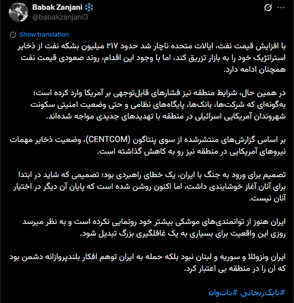در همین حال، شرایط منطقه نیز فشارهای قابلتوجهی بر آمریکا وارد کرده است؛ بهگونهای که شرکتها، بانکها، پایگاههای نظامی و حتی وضعیت امنیتی سکونت شهروندان آمریکایی اسرائیلی در منطقه با تهدیدهای جدیدی مواجه شدهاند.