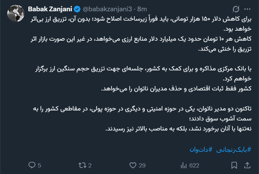 برای کاهش دلار ۱۵۰ هزار تومانی، باید فوراً زیرساخت اصلاح شود؛ بدون آن، تزریق ارز بیاثر خواهد بود.
