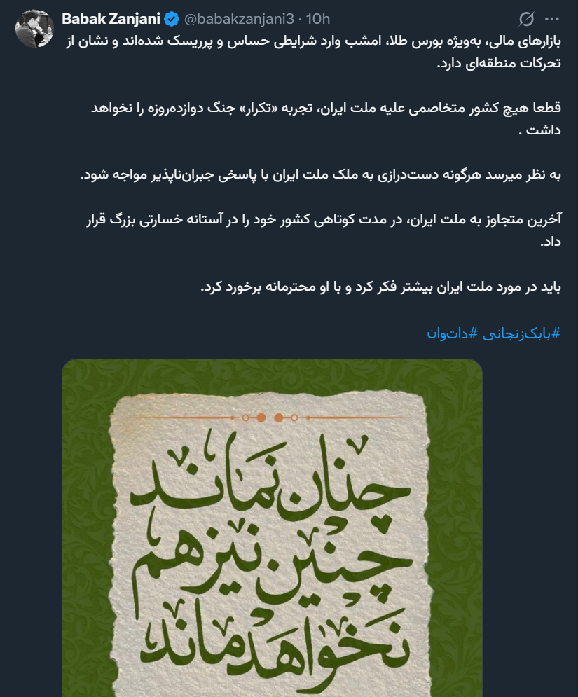 به نظر میرسد هرگونه دستدرازی به ملک ملت ایران با پاسخی جبرانناپذیر مواجه شود.