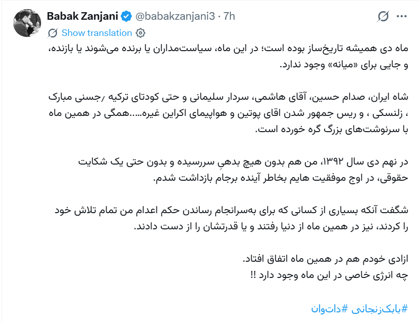 شاه ایران، صدام حسین، آقای هاشمی، سردار سلیمانی و حتی کودتای ترکیه، حسنی مبارک، زلنسکی، و رئیس جمهور شدن اقای پوتین و هواپیمای اکراین غیره…..همگی در همین ماه با سرنوشتهای بزرگ گره خورده است.