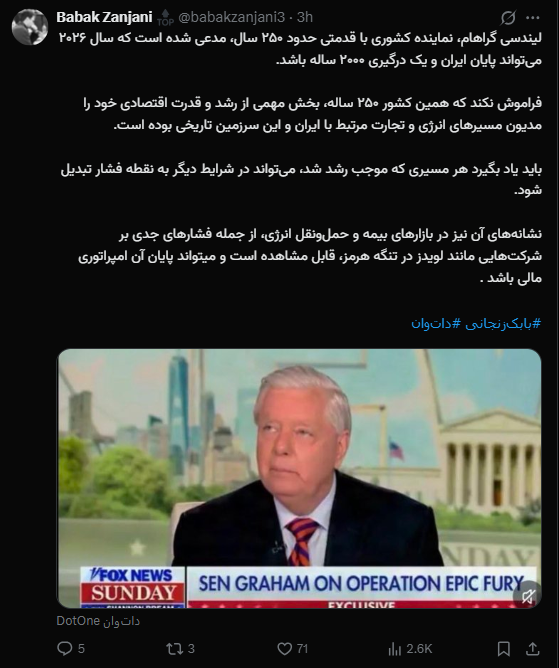لیندسی گراهام، نماینده کشوری با قدمتی حدود ۲۵۰ سال، مدعی شده است که سال ۲۰۲۶ میتواند پایان ایران و یک درگیری ۲۰۰۰ ساله باشد.