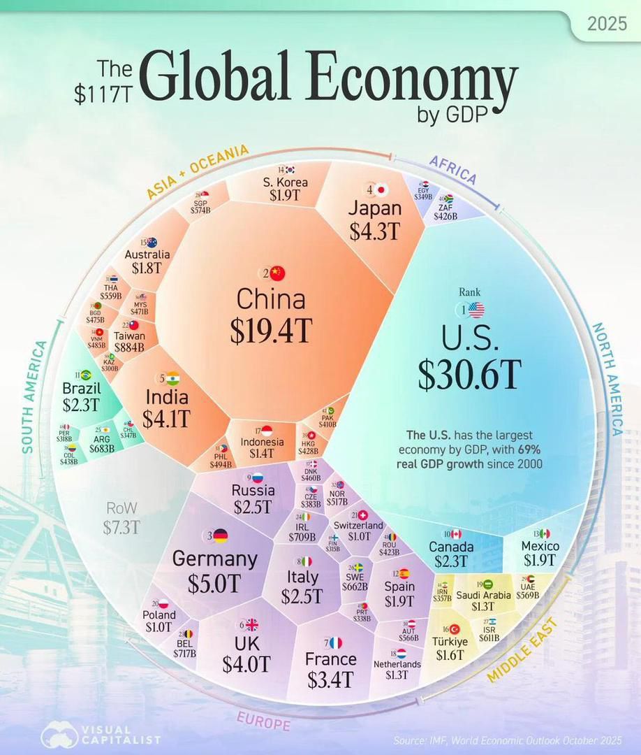گزارش GDP سال ۲۰۲۵ دیگر کشور ها به دلار چنین است :