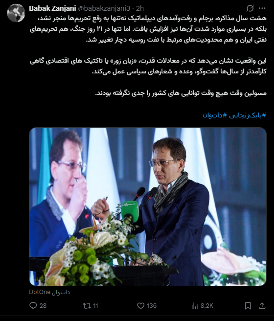 این واقعیت نشان میدهد که در معادلات قدرت، «زبان زور» یا تاکتیک های اقتصادی گاهی کارآمدتر از سالها گفتوگو، وعده و شعارهای سیاسی عمل میکند.