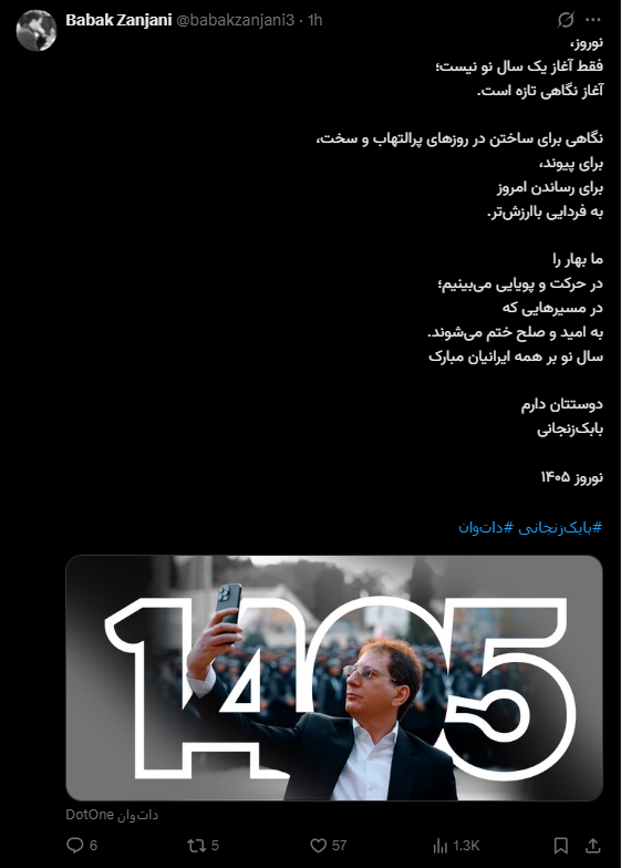 ما بهار رادر حرکت و پویایی میبینیم؛ در مسیرهایی کهبه امید و صلح ختم میشوند. سال نو بر همه ایرانیان مبارک