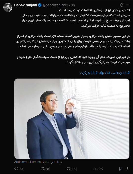 در غیر این صورت، خطر آن وجود دارد که کنترل بازار ارز از دست سیاستگذار خارج شود و مرجعیت قیمت به بازیگران غیررسمی منتقل گردد.